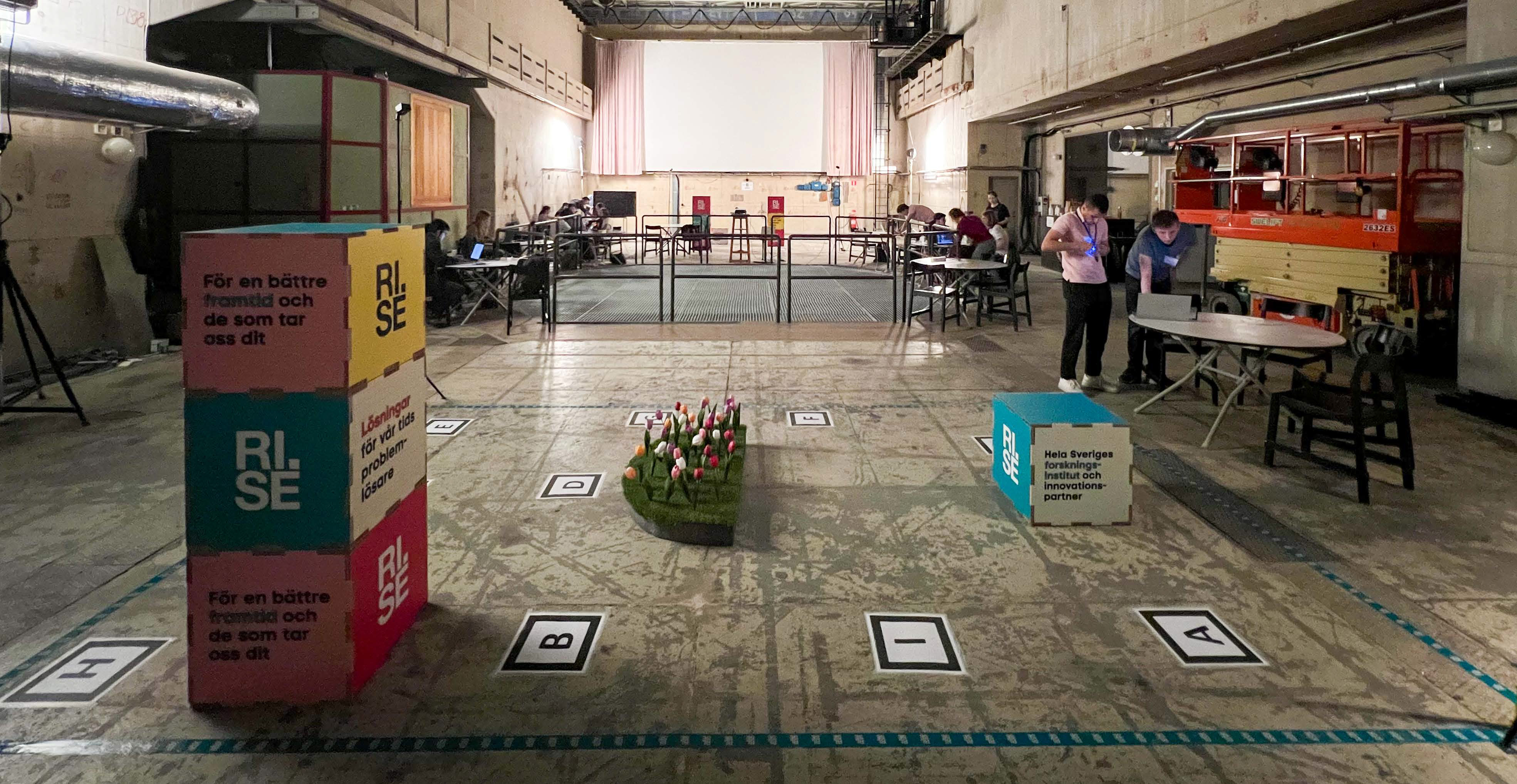 The first challenge was staged as a three-day hack-a-thon. During this challenge, four teams of participants used their bodies to pilot a drone through an obstacle course designed as a three-dimensional version of the game Pac-Man. Supported by a team of expert technicians, each team had to program the drone to recognize the presence of their body and react to gestures that they made. They had to pass through as many virtual points in the obstacle course in the shortest amount of time to maximize their score.